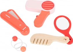 Include 12 piese accesorii, inclusiv pieptene, oglindă, uscător de păr și alte ustensile cosmetice.