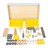 Opt piese de unelte, inclusiv un fierăstrău, un ciocan și o șurubelniță, permit copiilor să imite reparații reale și să-și îmbunătățească abilitățile practice.