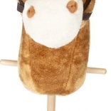 Căluțul de pluș pe băț Nico este însoțitorul ideal pentru micii călăreți. Capul din pluș fin, cu zăbală și frâu, invită la jocuri de imaginație, în timp ce bățul din lemn cu mânere stabile și roți asigură o deplasare confortabilă și lină pe podea sau afară. Copiii se vor bucura de o experiență mai autentică datorită efectului sonor – la apăsarea urechilor, căluțul nechează voios.