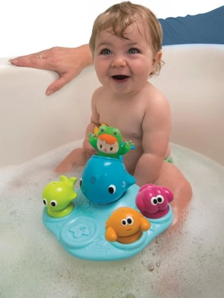 Aduceți bucurie băiței zilnice a copiilor cu insula plutitoare Cotoons. Această insulă jucăușă este ideală pentru distracția în cadă, include animăluțe colorate care vor încânta orice copil, iar cea mai îndrăgită este balena, care funcționează și ca stropitoare.