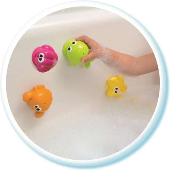 Animăluțele au culori vesele și atrag atenția copiilor în timpul băii, stimulându-le imaginația.