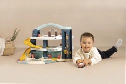 Produsul este proiectat estetic pentru copii de la 18 luni și este un cadou perfect pentru orice mic pasionat de automobile. Dimensiunile garajului sunt 62x60x43 cm, oferind un spațiu mare pentru joacă și dezvoltarea abilităților motorii ale copiilor.