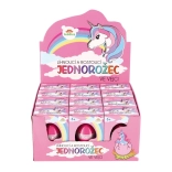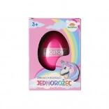 Descoperă magia nașterii unui unicorn! Această surpriză amuzantă ascunde o figurină care, după scufundarea în apă, eclozează treptat și crește. Cadoul ideal pentru copii de la 3 ani, care iubesc surprizele și creaturile magice. Procedeu simplu, execuție sigură și așteptare plină de emoție de 24–48 de ore pentru crăparea cojii. În aproximativ 72 de ore vei vedea unicornul întreg!