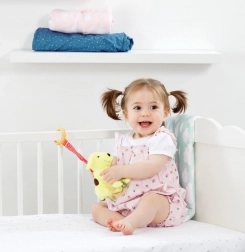 Fixarea ușoară de pătuț sau scaunul auto permite să aveți jucăria întotdeauna la îndemână, contribuind astfel la distracția în călătorii și acasă.