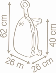 Polița rabatabilă și roțile permit transportul facil sub formă de bagaj de călătorie cu mâner extensibil.