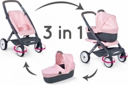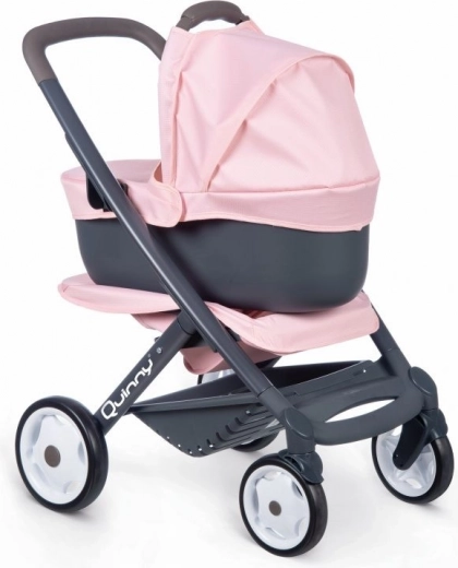 Cărucior combinat stilat pentru păpuși de până la 42 cm, în nuanță elegantă de roz deschis, oferă utilizare variabilă ca cărucior landou și variantă sport. Datorită landoului detașabil, roților frontale pivotante și mânerului ergonomic (65 cm), este ideal pentru joacă confortabilă acasă și afară. Roțile silențioase cu strat antifonic asigură o deplasare lină.