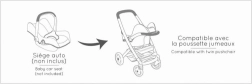Prin detașarea simplă a landoului, transformi căruciorul în câteva clipe. Partea superioară poate fi folosită ca coș/nositor pentru păpușă în călătorii.