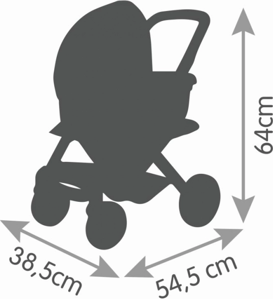 Husele robuste din material plastic sunt rezistente și ușor de întreținut – este suficient să le ștergi cu o lavetă umedă. Roțile frontale pivotante și stratul antifonic pe roți oferă o mișcare lină, silențioasă și stabilă atât în interior, cât și în exterior. Potrivit pentru păpuși de până la 42 cm (păpușa nu este inclusă).