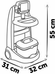 Căruciorul medical electronic SMOBY oferă copiilor o joacă realistă de-a doctorul. Datorită modulului electronic EKG integrat, cu sunete reale, copiii pot testa măsurarea funcțiilor vitale și asculta bătăile inimii. Căruciorul este ușor, stabil și ușor de manevrat datorită celor două roți, astfel încât îl pot folosi fără dificultate chiar și copiii mai mici. Toate accesoriile pot fi depozitate organizat în servieta inclusă.