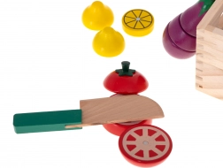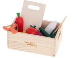 Set colorat de legume din lemn cu magneți, în lădiță practică, care îi va încânta pe micii bucătari. Copiii pot exersa în siguranță „tăierea” pe tocător, „curățarea” cu un curățător și pregătirea mesei pentru păpuși și plușuri. Datorită magneților, piesele se unesc și se desfac ușor – dezvoltă motricitatea fină, învățarea numerelor și imaginația în jocul de-a bucătăria. Fabricat din lemn fin șlefuit și vopsit cu culori netoxice.