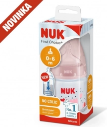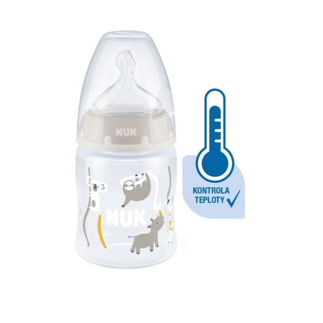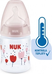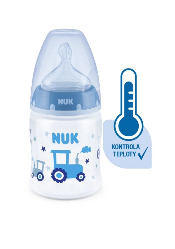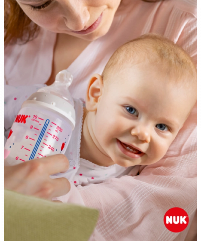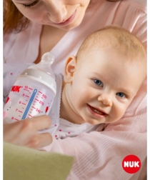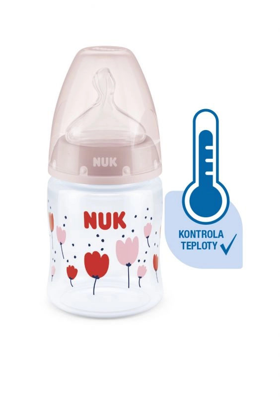 Controlul temperaturii îi ajută pe părinți să obțină temperatura optimă și astfel să asigure hrănirea în siguranță a copilului lor. Hrănire liniștită și sigură datorită controlului temperaturii. Când copilului îi este foame, mâncarea din biberon nu ar trebui să fie nici prea fierbinte, nici prea rece. De aceea mamele și tații verifică temperatura înainte de fiecare masă. Nu este ușor să știi când mâncarea are temperatura potrivită. De aceea au fost dezvoltate biberoanele NUK First Choice+ cu funcție de control al temperaturii. Această funcție nu a mai fost prezentată în această formă până acum. Biberoanele NUK First Choice+ sunt acum dotate cu un nou indicator de temperatură și ajută la prevenirea hrănirii copilului cu mâncare prea fierbinte. Indicatorul arată ca un termometru, este poziționat între gradații și își schimbă culoarea în funcție de temperatura conținutului biberonului. Această funcție îi ajută pe părinți să obțină temperatura optimă la hrănirea copilului. Dacă mâncarea este prea fierbinte, indicatorul albastru devine alb. Ideal ar fi ca mâncarea să aibă temperatura corpului (37 °C), ceea ce corespunde colorării albastre a afișajului. Atenție: controlul temperaturii este destinat unei verificări suplimentare. Înainte de hrănire, temperatura trebuie verificată și manual. Pentru a verifica temperatura, recomandăm să picurați câteva picături pe partea interioară a încheieturii. Cea mai naturală tetină pentru copilul dvs. De mulți ani, biberoanele First Choice sunt prima opțiune pentru hrănirea la biberon după modelul alăptării. Cu biberoanele First Choice+ ne-am apropiat și mai mult de natură – permit dezvoltarea sănătoasă a maxilarului și oferă copilului senzația că bea de la sânul mamei. Naturală și corect modelată pentru maxilar. Forma unică a tetinelor NUK este inspirată de mamelonul mamei în timpul alăptării. Tetina lasă suficient spațiu pentru mișcările naturale de supt ale limbii și maxilarului copilului. Moale ca sânul mamei. Tetina din silicon, datorită noii zone moi, se potrivește mai bine cu bolta palatină a copilului, asigurând o senzație naturală la băut. Previene colicile. Sistemul îmbunătățit Anti-Colic Air System asigură un flux lin al hranei lichide fără înghițire de aer. Testat clinic. Datorită formei deosebit de naturale a tetinei, este foarte bine acceptată de copii. Aceasta înseamnă că este deosebit de potrivită pentru copiii care sunt alăptați și hrăniți concomitent cu biberonul. Biberon pentru bebeluși. Afișaj practic NUK de control al temperaturii, care își schimbă culoarea de la albastru (rece) la alb (prea fierbinte) fără substanțe nocive și fără miros – nu conține BPA umplere și curățare ușoare – gât extra-larg al biberonului prindere sigură și stabilitate – datorită biberonului ușor conturat și bazei late număr nelimitat de combinații – compatibil cu toate produsele NUK First Choice. Studiu științific: Moral et al. BMC Pediatrics 2010, 10:6. Informații detaliate pe http://nuk.com/research. Studiu de piață independent cu 205 pediatri, Germania 2018. 99% dintre mame au confirmat că biberonul NUK First Choice+ Control nu provoacă colici. Caracteristici principale: temperatura conținutului biberonului îi schimbă culoarea: dacă alimentul este prea fierbinte, indicatorul albastru devine alb ideal pentru maxilarul copilului, tetină din silicon extra-moale, 0–6 luni M (orificiu mediu = pentru hrana bebelușilor) testat clinic: pentru o combinație optimă între alăptare și hrănirea la biberon design atractiv