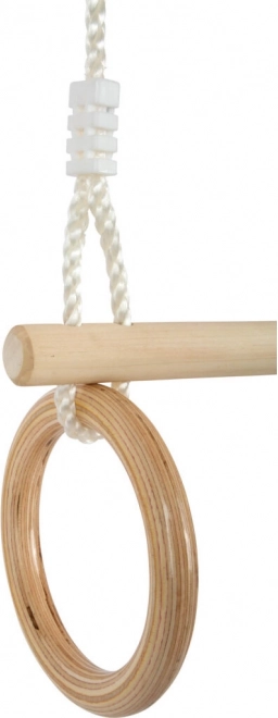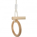 Această bară din lemn cu inele gimnastice permite exerciții fizice variate și este potrivită pentru copiii de la 3 ani. Construcția robustă și lungimea reglabilă a funiilor asigură siguranță și varietate.
