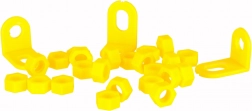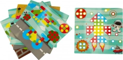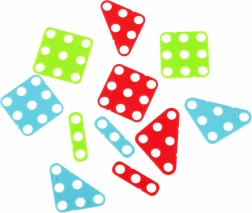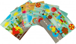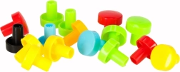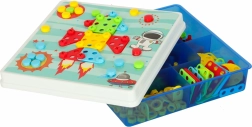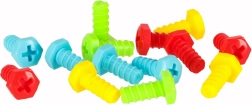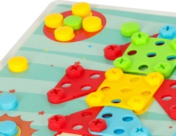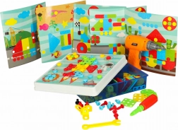 Un set mare de șuruburi colorate, plăcuțe și piese cu forme variate stimulează creativitatea și susține realizarea independentă de mozaicuri și modele.