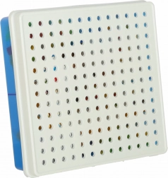 Placa perforată și cardurile cu imagini ajută la asamblarea ușoară a rachetelor, animalelor și a propriilor creații; învățarea formelor și culorilor devine o joacă.