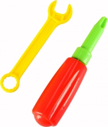 Copiii pot înșuruba ca niște meșteri adevărați datorită bormașinii sigure pe baterii, șurubelniței și cheii – perfecte pentru antrenarea motricității.
