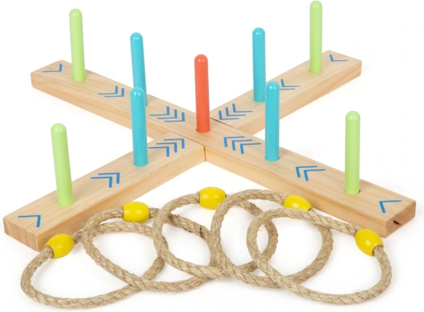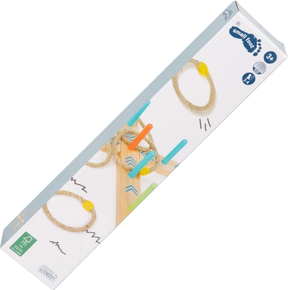 Aruncarea cercurilor este un joc de familie distractiv care va îmbunătăți abilitățile și coordonarea. Baza este realizată din lemn 100% certificat FSC®, asigurând originea durabilă și ecologică a materiilor prime. Datorită săgeților colorate de pe bază, copiii pot calcula scorul ușor, fără a fi nevoie să știe numere. Include și săculeț de bumbac pentru depozitare ușoară.