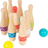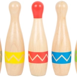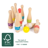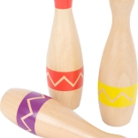 Nouă popice stabile din lemn natural cu imprimeu modern și colorat, pentru durabilitate îndelungată și joacă sigură.