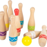 Datorită dimensiunilor compacte ale popicelor (înălțime 19 cm) și ale mingilor (Ø 5,5 cm), copiii le pot manevra cu ușurință. Benzile colorate cu model zigzag sporesc atractivitatea și, totodată, îmbunătățesc vizibilitatea în timpul jocului. Totul se depozitează în săculețul textil și se transportă comod oriunde.