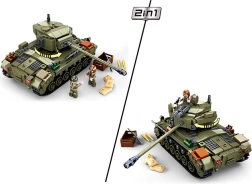 Acest set detaliat din seria Sluban Army aduce două versiuni de tanc mediu și un tun antiaerian funcțional. Datorită versatilității 2‑în‑1 poți alege aspectul tancului în funcție de strategie și poți completa scena cu trei figurine pentru o experiență de joc și mai realistă.