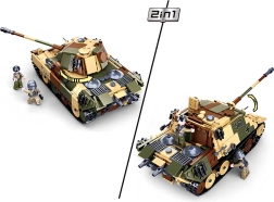 Acest set detaliat combină aspectul realist al tehnicii militare cu construcția creativă. Datorită execuției 2‑în‑1, poți alege între două variante de tanc în design camuflat și astfel îți poți extinde scenariile de joacă. Sunt incluse 3 figurine, inclusiv un trăgător cu bazooka, pentru povești și mai dinamice.