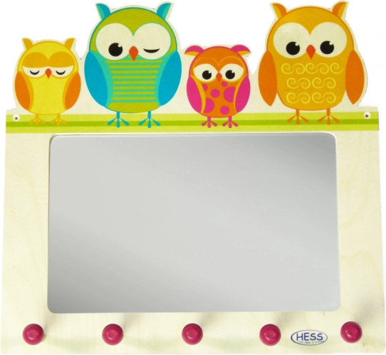 Acest cuier colorat, decorat cu motivul unei familii de bufnițe, va înveseli orice cameră de copil sau hol. Este echipat cu cinci cârlige care oferă suficient spațiu pentru agățarea diferitelor haine și accesorii. Oglinda din plexiglas indestructibil este sigură și practică.