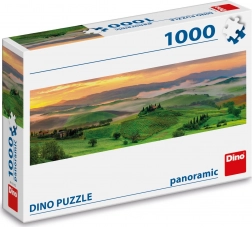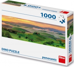 Bucură-te de relaxare asamblând puzzle-uri panoramice cu motivul apusului de soare cețos peste coline verzi. Producție cehă DINO de calitate, decupaje precise și 1000 de piese pentru o provocare plăcută. Carton durabil, sigur pentru sănătate, format panoramic și imagine ideală pentru înramare după finalizare.