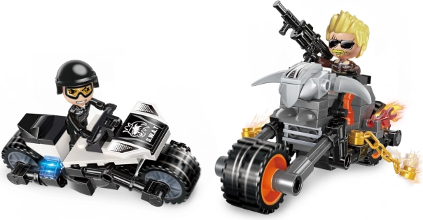 Construiți și personalizați-vă propriile motociclete pentru experiențe de conducere palpitante. Setul include două figurine cu accesorii pentru scenarii de joc nesfârșite.