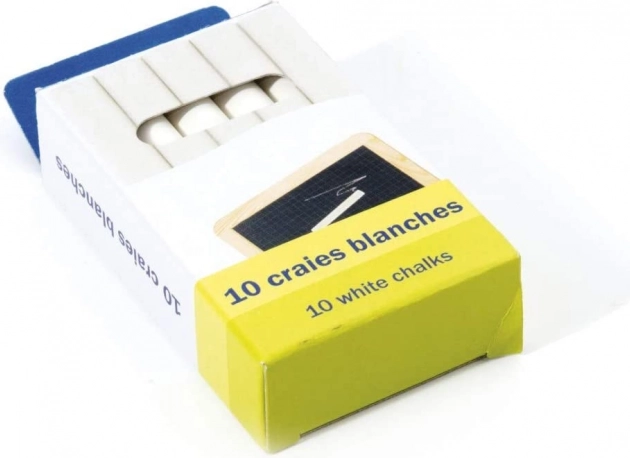 Set din carton cu cretă albă ideal pentru scris pe tablă, accesoriu potrivit pentru copii de la 3 ani.