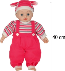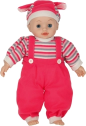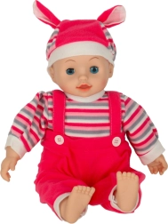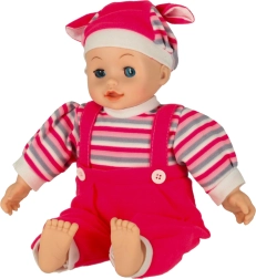 Păpușa adorabilă Maja, cu înălțimea de 40 cm, este însoțitorul ideal pentru micile mămici. La apăsarea burticii moi, emite 4 sunete diferite – plânge, râde și spune „mama” și „dada”. Are ochi care se închid, hăinuțe moi, detașabile, de culoare roz, și susține empatia, imaginația și dezvoltarea motricității fine.