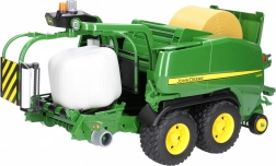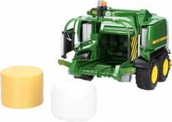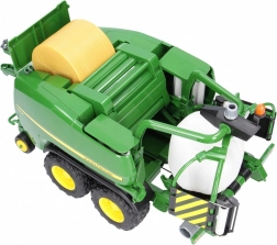 Presa combinată pentru baloți rotunzi JOHN DEERE reproduce fidel utilajele agricole reale și completează perfect orice fermă pentru copii. La scara 1:16 oferă funcții care chiar lucrează în timpul deplasării – de la pick-up-ul rotativ până la clapeta care se deschide pentru introducerea ușoară a balotului.