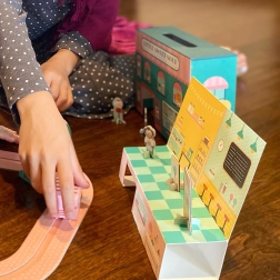 Fabricat cu grijă pentru planetă – cartonul, hârtia și lemnul utilizate au certificare FSC, iar ambalajul este complet fără plastic. Setul dezvoltă motricitatea fină, imaginația și jocul de rol pentru copiii de la 3 ani.