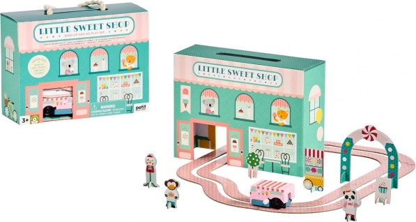 Oferă-le copiilor o aventură dulce cu setul de joacă cofetărie de la PETIT COLLAGE. Cofetărie cu două fețe, mașină de înghețată din lemn cu mecanism de întoarcere și o pistă din 8 piese ușor de asamblat asigură ore de distracție creativă. Setul este fără ambalaj din plastic, fabricat din materiale cu certificare FSC și, datorită mânerului din frânghie, se transportă ușor – ideal pentru acasă și în călătorii.