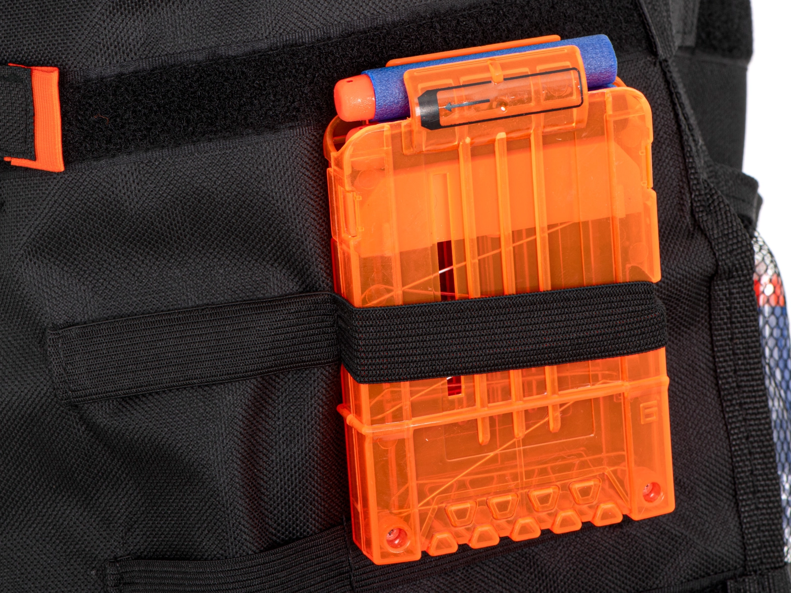 Vestă tactică completă cu accesorii pentru jucătorii Nerf. Fii pregătit pentru următoarea bătălie Nerf cu o vestă echipată cu mult spațiu pentru gloanțe și accesorii.