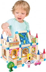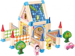 Descoperiți lumea fanteziei nesfârșite cu setul de construcție din lemn Bino Castel. Acest set oferă copiilor oportunitatea de a construi orice, de la case la castele și palate, toate cu accent pe designul complex și contrastele de culoare, care susțin gândirea logică. Fiecare set include o broșură cu sugestii pentru construcții creative, astfel încât copilul să poată începe imediat.