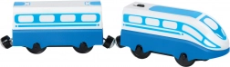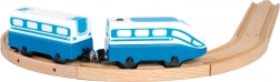 Această locomotivă electrică de mare viteză cu vagon este un accesoriu ideal pentru orice circuit de trenulețe din lemn. Datorită dimensiunilor compacte, operării ușoare și cuplării magnetice a vagonului, oferă copiilor ore de distracție și, în același timp, dezvoltă motricitatea fină și imaginația.