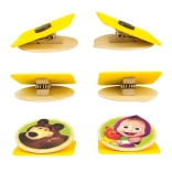 Clemă este realizată din lemn de calitate, lăcuit cu vopsele sigure, ceea ce garantează siguranță și durabilitate. Datorită dimensiunilor compacte de 6 x 6 x 3 cm, este ideală pentru utilizarea zilnică. Este disponibilă în două variante de motive – cu Mașa sau cu Ursul, ce pot fi alese la plasarea comenzii.