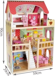 Căsuța din lemn pentru păpuși este mediul de joc perfect pentru copiii dumneavoastră. Cu o înălțime de 90 cm, este unul dintre modelele cele mai mari de pe piață, perfectă pentru joacă, chiar și pentru copiii mai mari. Construcția din lemn de calitate asigură stabilitate și siguranță, astfel că nu se va răsturna în timpul jocului.