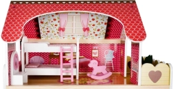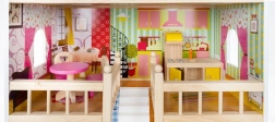 Căsuța este echipată cu trei niveluri conectate prin scări albe, cinci camere și un balcon, ideal pentru joaca cu întreaga familie de păpuși.