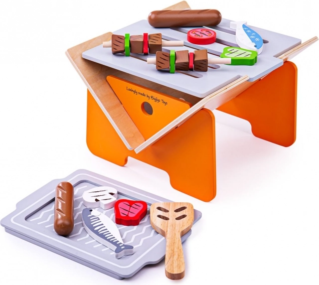 Organizează o petrecere în grădină cu grătarul de masă din lemn de la Bigjigs Toys! Include 10 piese de mâncare, paletă, tavă și cărbuni. Montaj ușor fără șuruburi. Fabricat din materiale sustenabile.