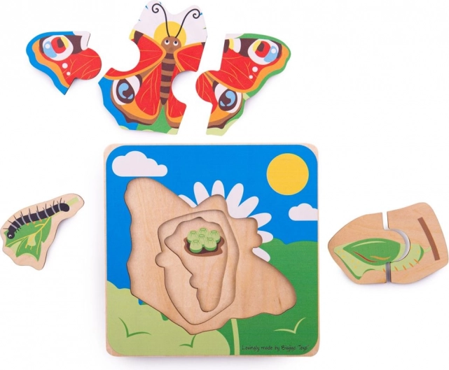 Descoperiți un puzzle din lemn distractiv și educativ, care le arată copiilor în mod clar ciclul de viață al fluturelui. Patru straturi, de la omidă la fluture adult, dezvoltă gândirea logică, motricitatea fină și răbdarea. Realizat din materiale sustenabile și respectă standardele europene de siguranță.