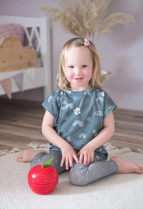 Piese din lemn netede și rezistente, în culori vii, completate de o frunză din pâslă. Plăcut la atingere, sigur și pregătit pentru joacă frecventă.
