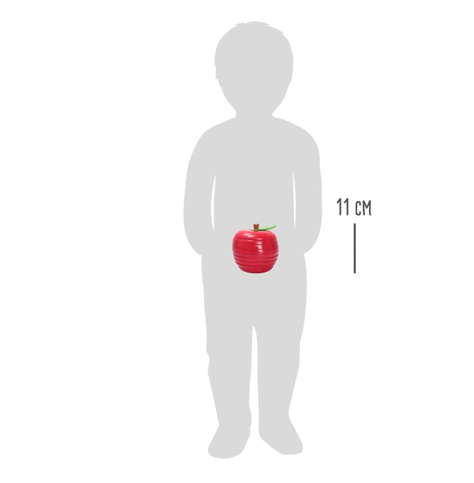 Execuția din lemn durabilă, cu suprafață netedă, frunză din pâslă și culori strălucitoare, asigură o durată de viață lungă și un aspect atractiv. Mărul asamblat devine podoba fiecărui raft și un cadou grozav pentru copii de la 3 ani.