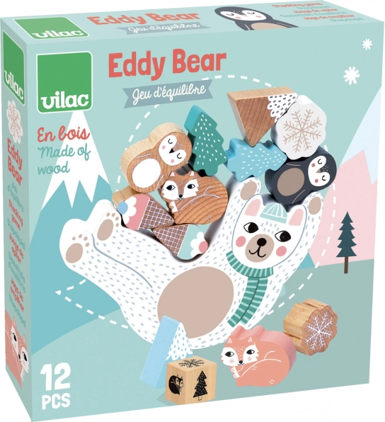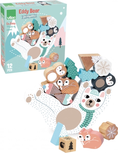 Jocul de echilibru Ursulețul Eddy, în tonuri scandinave delicate, aduce distracție pentru copii și părinți. Copiii aruncă zarul colorat și, în funcție de culoarea afișată, adaugă piese din lemn pe ursulețul care se leagănă. Jocul antrenează îndemânarea, concentrarea și echilibrul, susținând totodată răbdarea și gândirea logică.