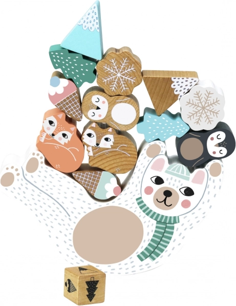 Un adorabil joc de echilibru din lemn cu ursulețul Eddy care dezvoltă motricitatea fină, răbdarea și coordonarea. Aruncă zarul și, în funcție de culoare, așază pe burtica ursulețului fulgi de zăpadă, vulpi polare, pinguini, munți sau înghețate. Cine menține turnul cel mai mult timp câștigă! Fabricat ecologic, ilustrat de Michelle Carlslund.