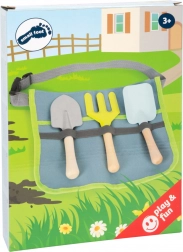 Practică borsetă pentru copii cu unelte de grădinărit de la small foot, care le permite micilor grădinari să ajute în grădină având mâinile libere. Setul include 3 unelte metalice cu mâner din lemn – lopățică, greblă și hârleț – în mărime pentru copii. Cureaua reglabilă cu cataramă cu clic și buzunarele rezistente asigură depozitarea sigură a uneltelor. Joaca în grădină sprijină motricitatea, jocul de rol și relația cu natura.