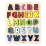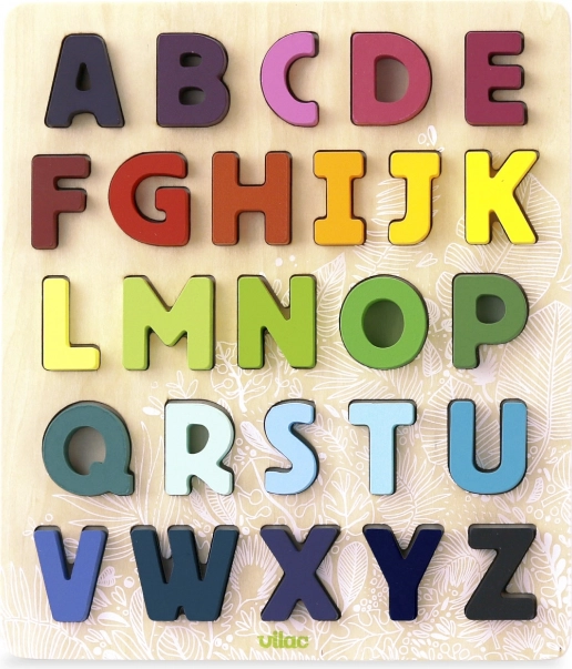Puzzle-ul de inserție Alfabet este nu doar educativ, ci și un element decorativ pentru camera copiilor. Cu literele viu colorate în culorile curcubeului, copiii se pot distra ore întregi învățând în același timp. Puzzle-ul este potrivit pentru copii de la 2 ani și este ambalat într-un săculeț textil practic.