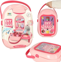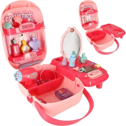 Set cosmetic în valiză portabilă pentru micile cochete și viitorii coafori, care aduce o mulțime de accesorii pentru joc creativ: uscător de păr, pieptene, oglindă, agrafe, inele, brățări și sticluțe colorate. Valiza are un geam transparent pentru personalizare – introduceți o poză sau numele copilului și creați un set unic pentru jocuri de rol. Grozav pentru dezvoltarea motricității fine și a abilităților sociale. Nu conține produse cosmetice reale.