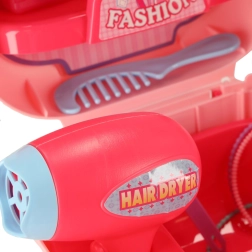 Setul include pieptene, oglindă, sticluțe, accesorii pentru păr și alte recuzite pentru un joc realist de coafor și cosmetică.