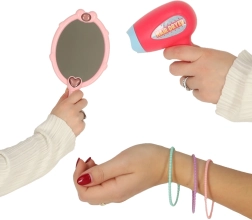 Uscătorul de păr din plastic pentru copii și simpatica oglindă stimulează imaginația și oferă jocului o experiență autentică – în siguranță și fără produse cosmetice reale.