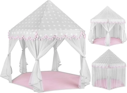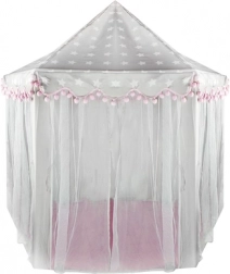Creați-le copiilor un colțișor sigur pentru odihnă și jocuri de imaginație. Cortul are acoperiș conic, 6 intrări deschise cu draperii luminoase și respirabile și design gri‑roz cu steluțe, care se potrivește atât în camera copilului, cât și în colțul de joacă. Datorită construcției ușoare cu prindere prin clic, îl veți monta în câteva clipe și la fel de ușor îl veți muta sau depozita.